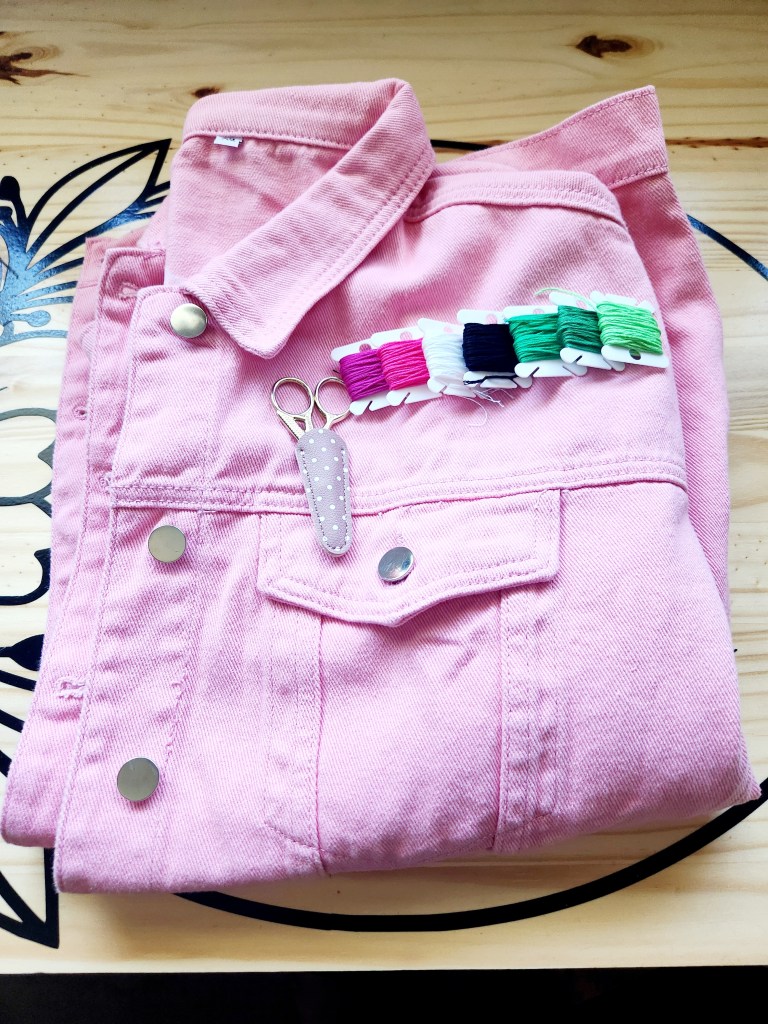 Step 4: Next we chose our embroidery floss colors. We knew that we needed to choose colors that would pop on the pink jacket.