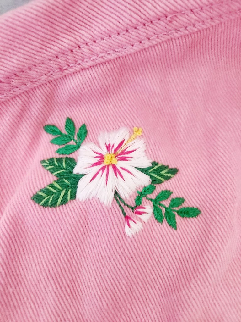 This project was so satisfying. It took a little extra time but it was well worth it. There are so many possibilities within this project. Embroidered wear-ables is so versatile! You could do hats, jeans, tops or even tennis shoes! Happy embroidering!