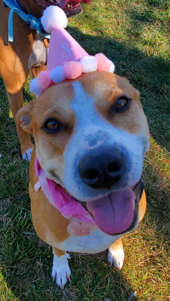 Ok you caught us; this isn’t the best picture of the tag but look how happy she is about it!