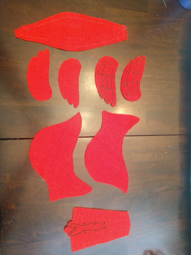 If doing the cardinal wings make sure to cut and extra piece of felt to glue to the back of the wings to cover up the ugly embroidery back.