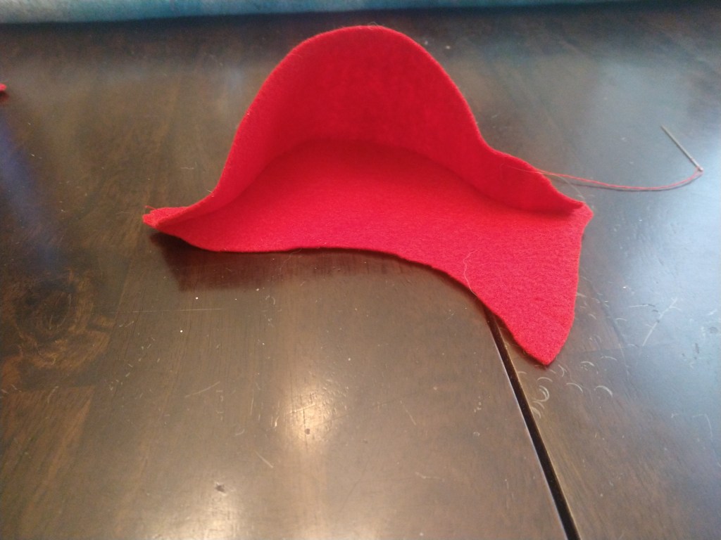 You’ll need the felt for the wings/ tail, the cardboard, and fabric glue. Simply wrap the felt around the cardboard with the pretty side out and glue them in place. Again I’ll remind you to make sure you have 2 different wings. When in doubt hold them up to the bird before you glue so all your hard work isn’t wasted by gluing the wrong way. Attach the backing to cardinal wings if you chose to embroider.