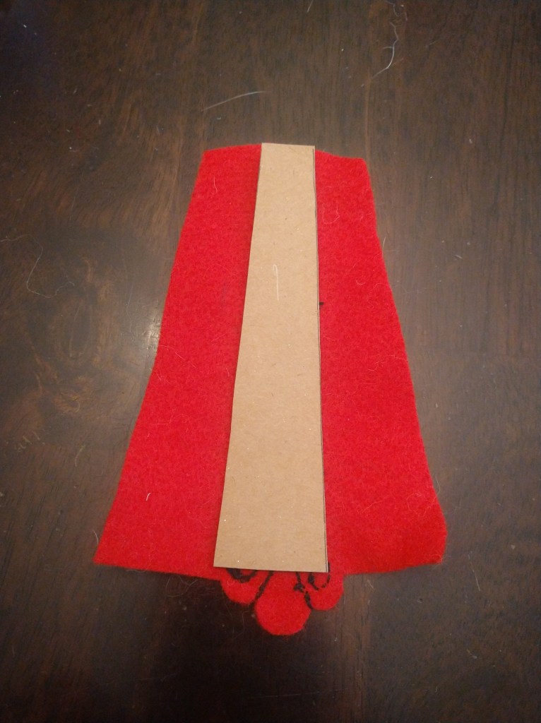 We also cut out the cardboard to stiffen the doves wings and the cardinals tail. The cardboard should be the size you want the end result to be while the felt should be big enough to cover the cardboard.