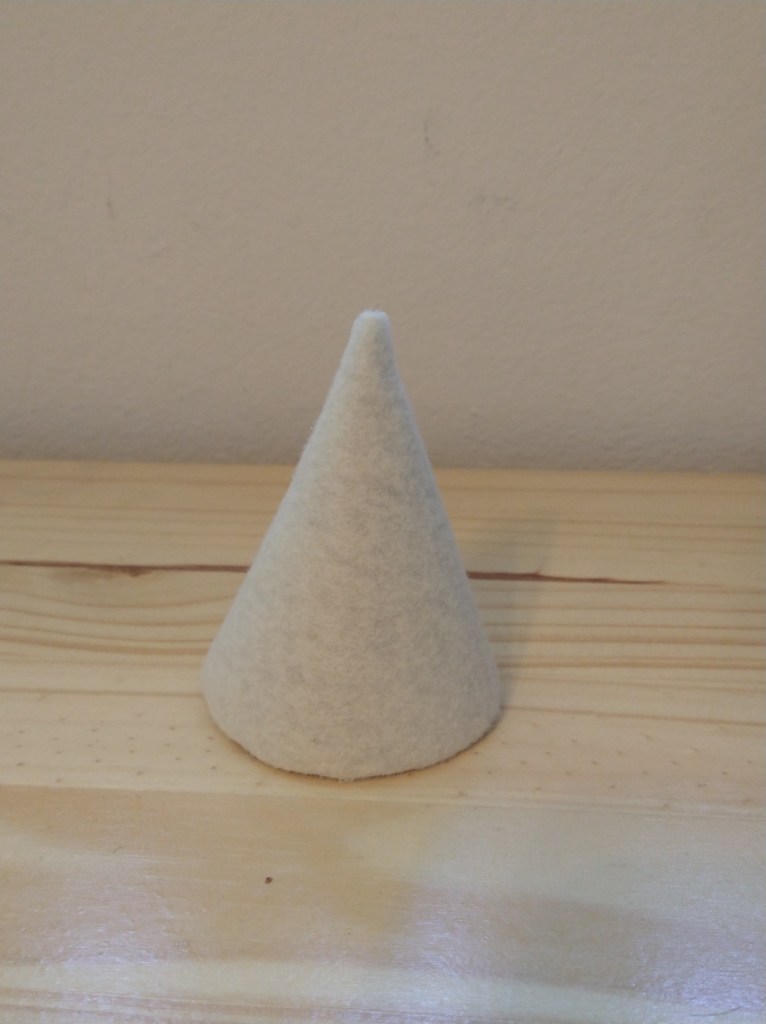 The cone for the dove is done exactly the same way as the wings. Just wrap the felt around and glue it in place. The holder for the cardinal is definitely different.