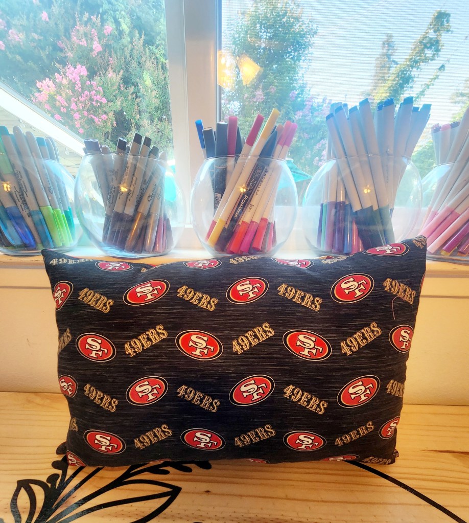 This project is for all the book lovers out there. This book pillow was made for a San Francisco 49er fan who also happens to be an avid reader… ( yes, sports fans read to). Once you gather all your materials and pick your theme this pillow comes together pretty quickly. It makes a wonderful gift for the lover of literature in your life!