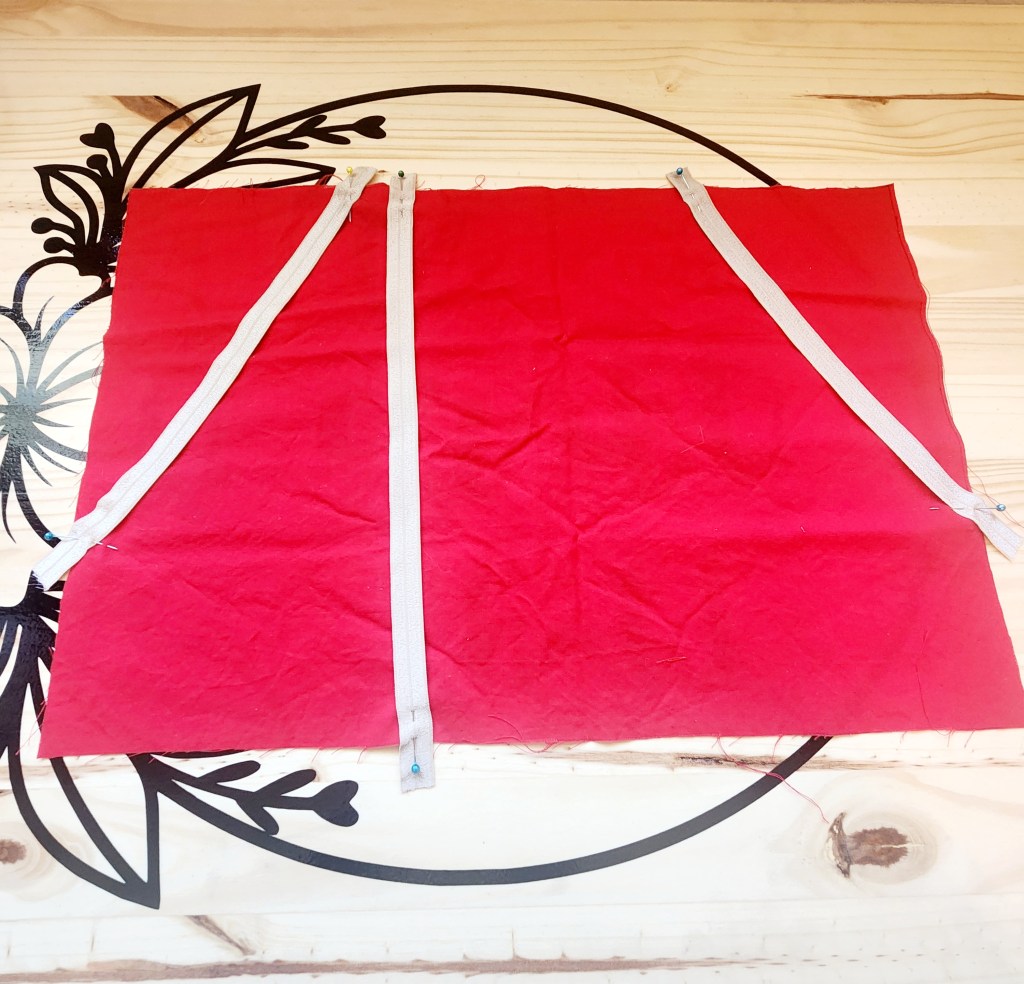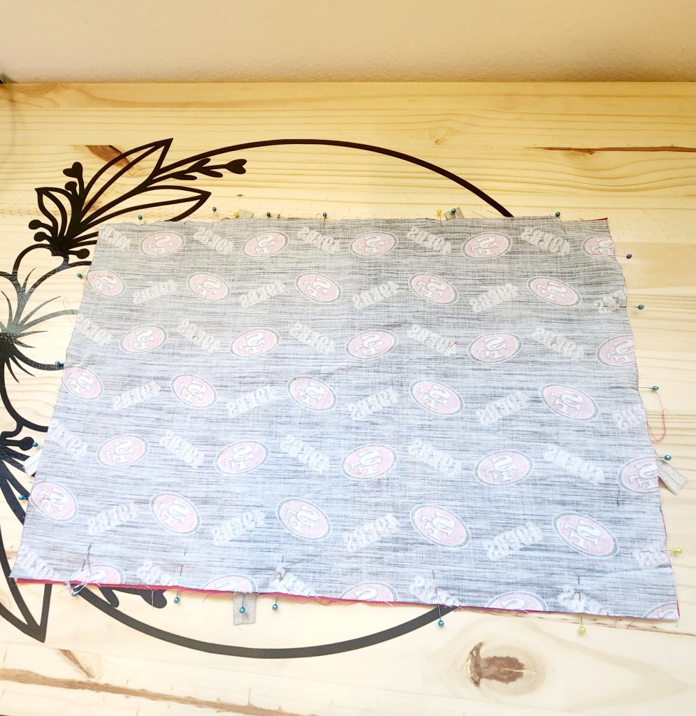 Step 4: Pin the bottom fabric to the top fabric right sides together.