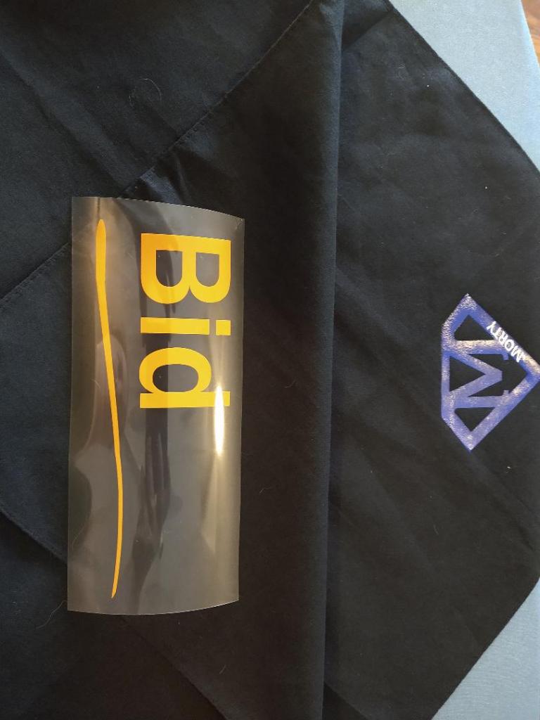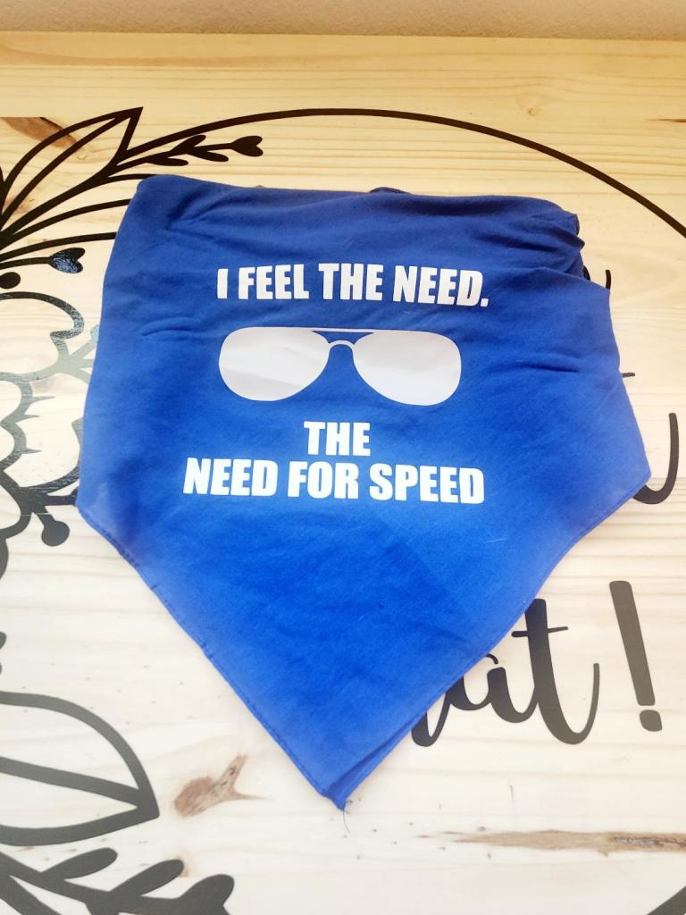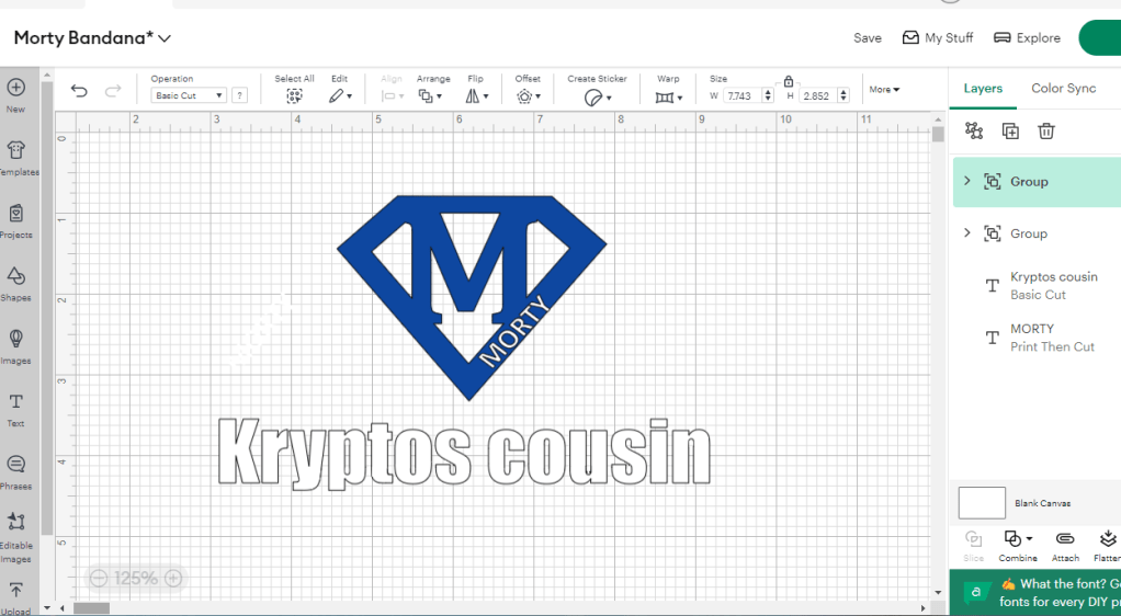 Make sure that you are creating a design that will work for the bandana but more importantly the size of dog you have. When making a design for the boxer we can use thinner fonts because the overall image can be larger. For the tiny chihuahua you need to use a bolder font and have a much smaller image. Try fitting the bandana to the dog first to get a good idea of what part with be visible when worn.