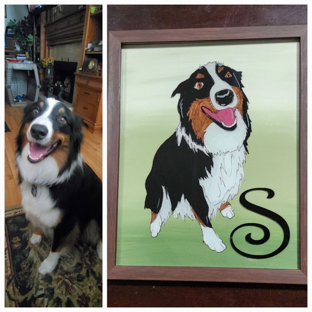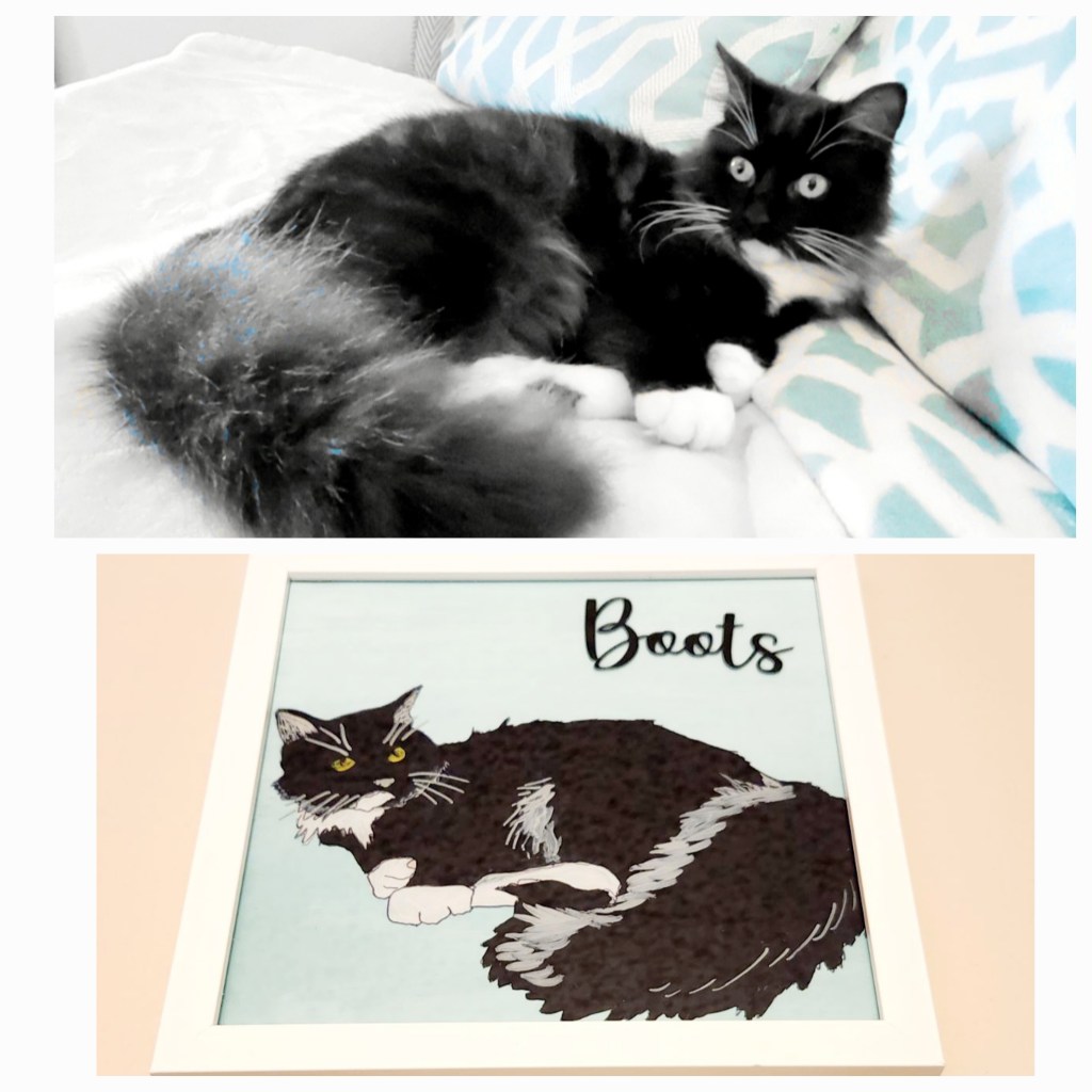 Now you have a customized portrait of your delightful pet! If you want to you could take it up a notch and add a name to your painting, you could add some paw print stickers to your frame or you could even make a collage of multiple pets together. There are so many options! These make the perfect gift for any pet lover!