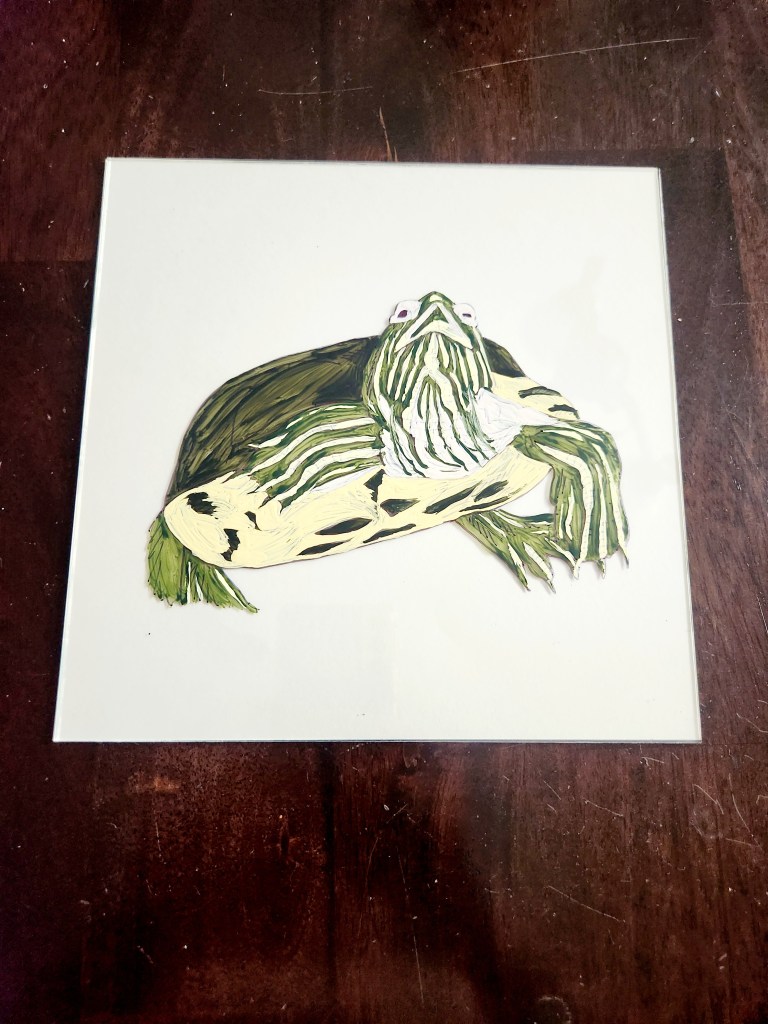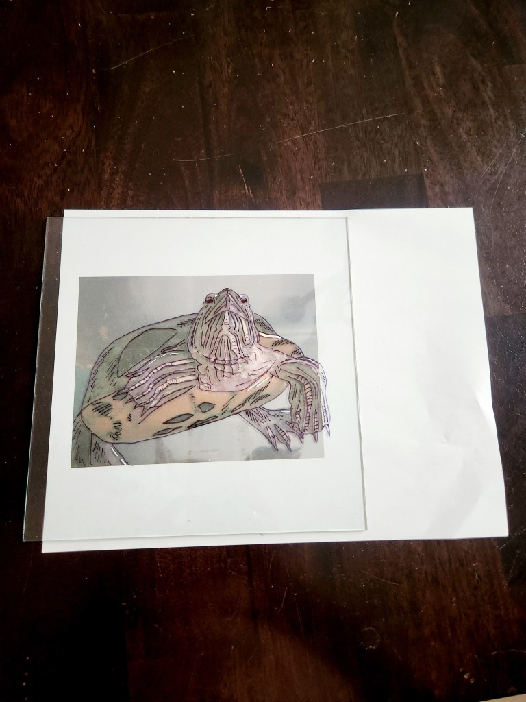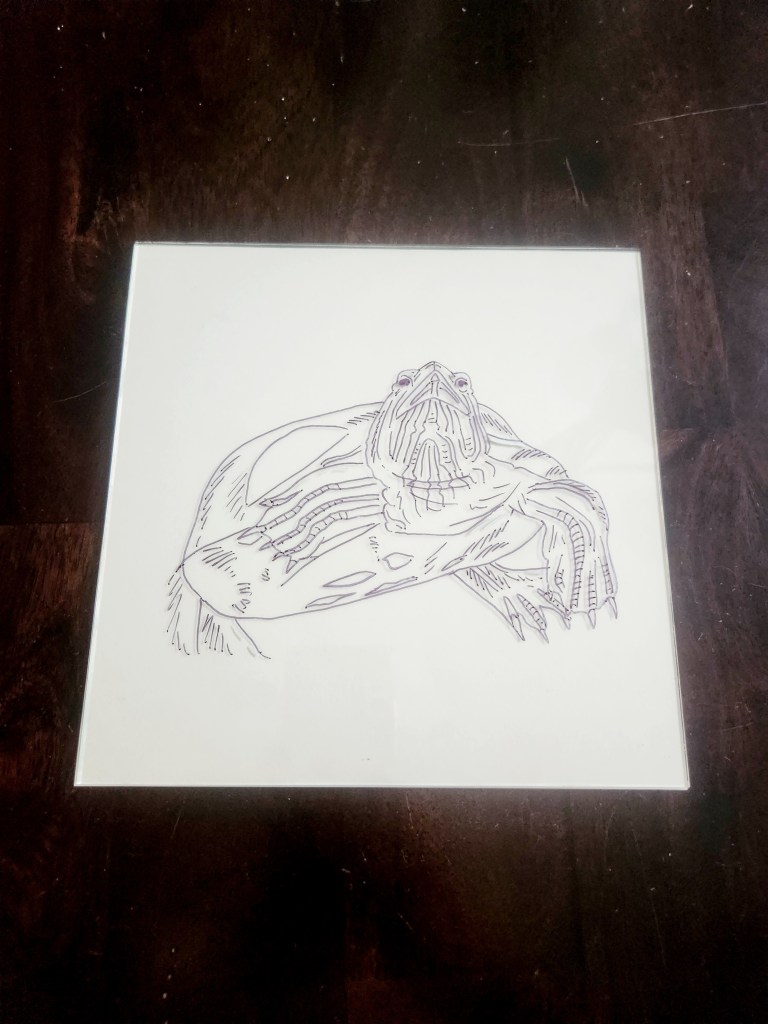 Hello to all the pet parents out there! Have you ever wanted to create a portrait of your lovable fur baby? It’s quite a challenge capturing a pets likeness, trust us! We’ve tried and failed many times. It’s truly a skill. It doesn’t have to just be dogs and cats either, this one happens to be of a sassy turtle named Touche. This is an easier way to do it and in our opinion it comes out pretty darn adorable!