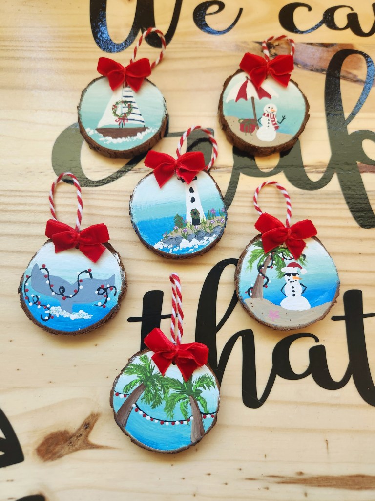Raise your hand if you love Christmas! It’s our favorite holiday so we try to do as much as possible to spread the holiday cheer with our friends and family. Making handmade gifts is something we are pretty much constantly working on or are at least thinking about throughout the year. These painted ornaments are not only adorable but are the perfect gift for anyone!