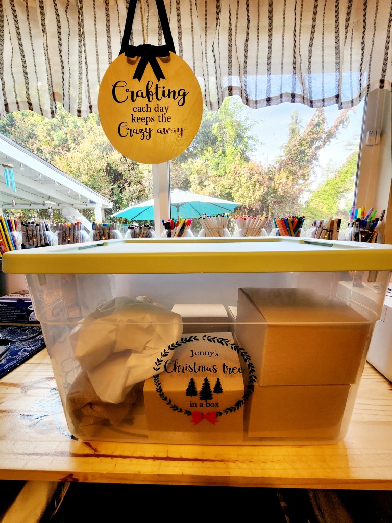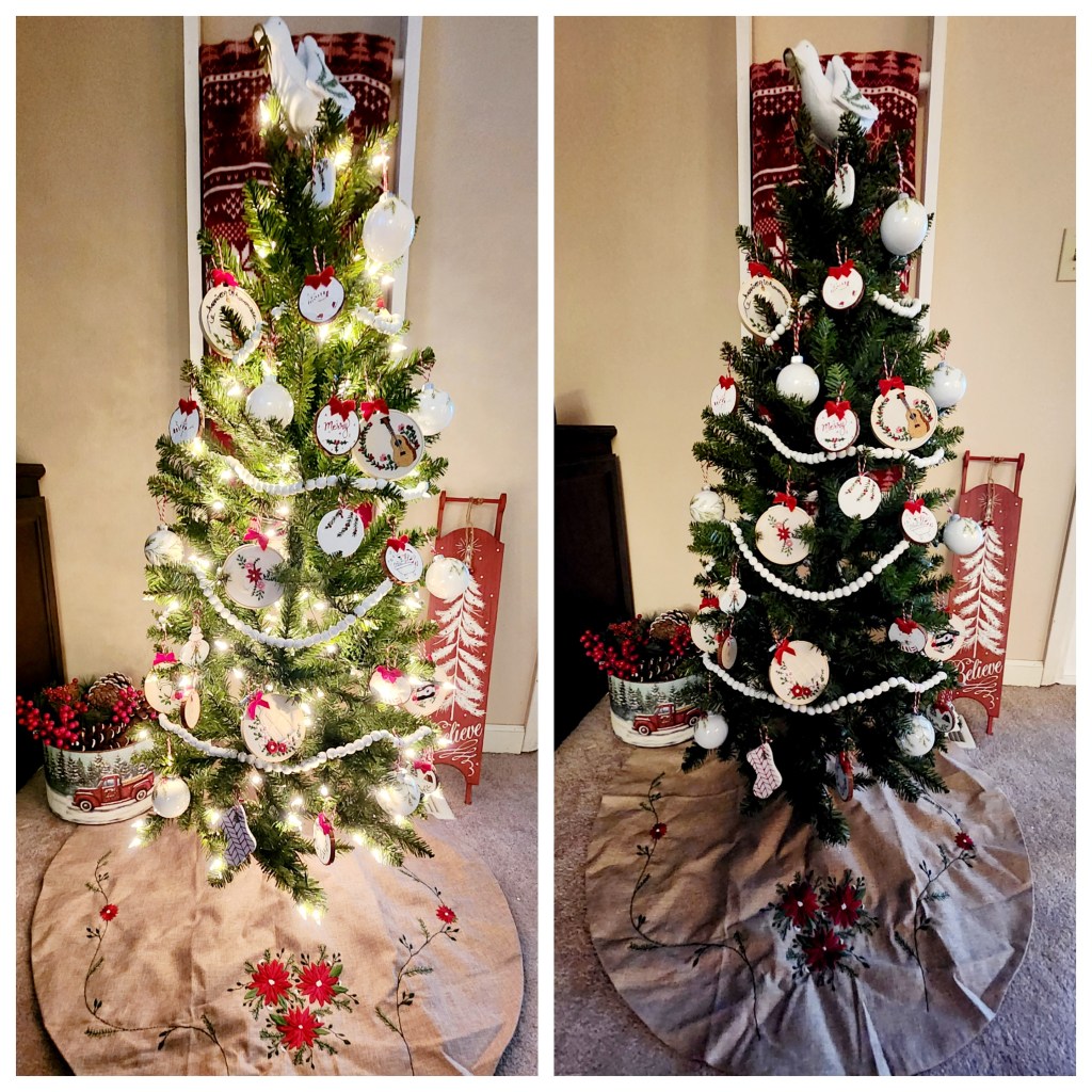 Hello all you Christmas junkies out there! We just can’t seem to get enough of Christmas and everything that comes along with it. We’ve self appointed ourselves our families official Christmas cheer spreaders. So, when a family member casually mentioned they’d like to get back into decorating their house for Christmas last year ( and didn’t) we took it upon ourselves to to lend a helping hand this year. That’s when the idea of “Christmas tree in a box” was born. We purchased a manageable sized artificial tree and began creating one of a kind personalized ornaments and other decor to go along with the tree. After all, what says Christmas more than a Christmas tree?