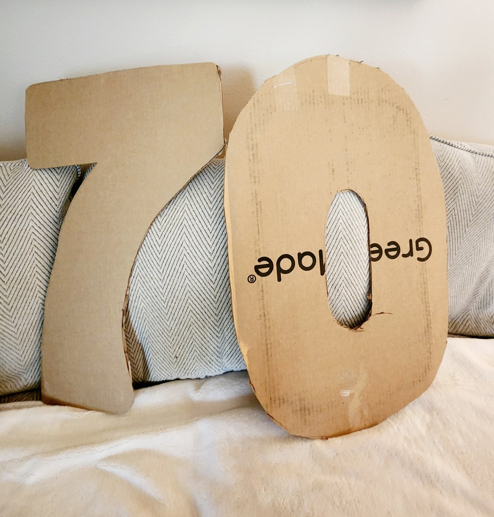 Who doesn’t love looking at photos from “the good old days?” We certainly do! We were having a birthday party for one of our mother in laws 70th birthday’s. We of course wanted to make it as special as possible for her. So, we decided to create something that would really grab her attention as soon as she walked in. We landed on these number photo collages.