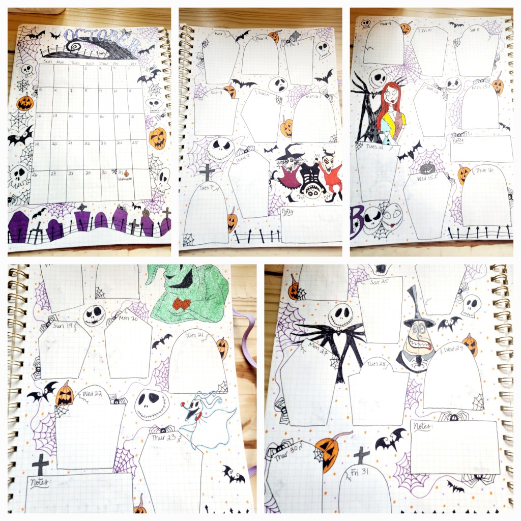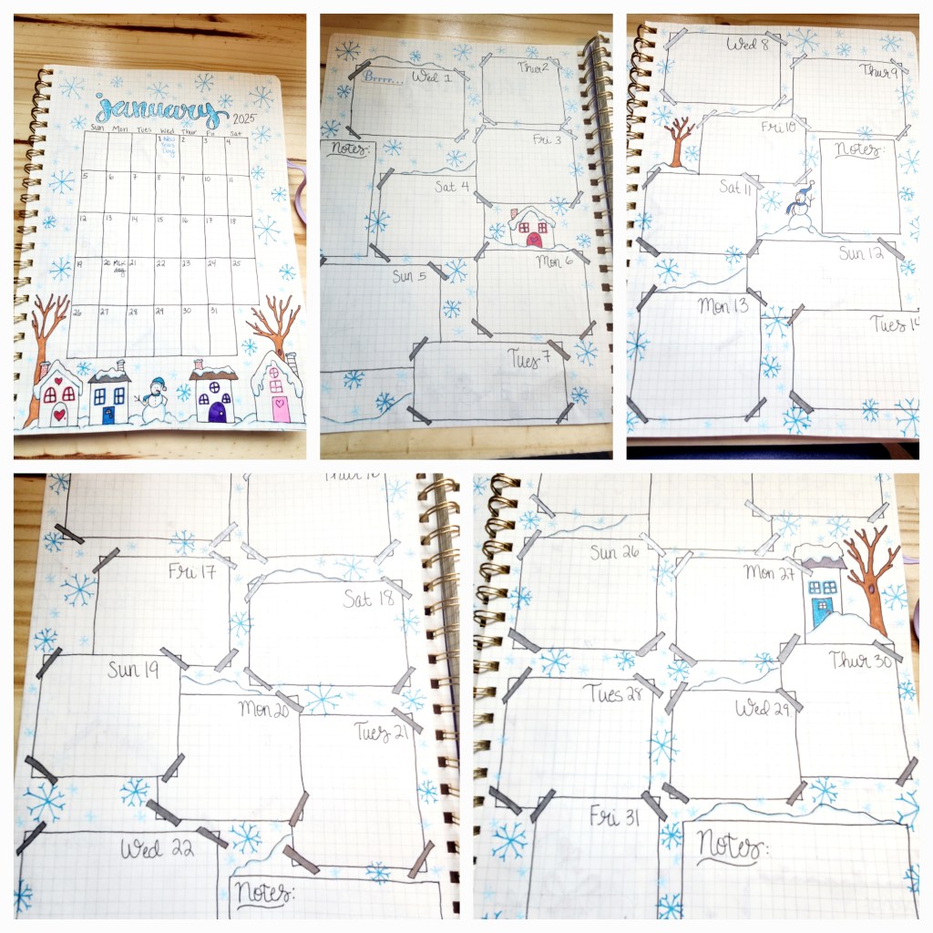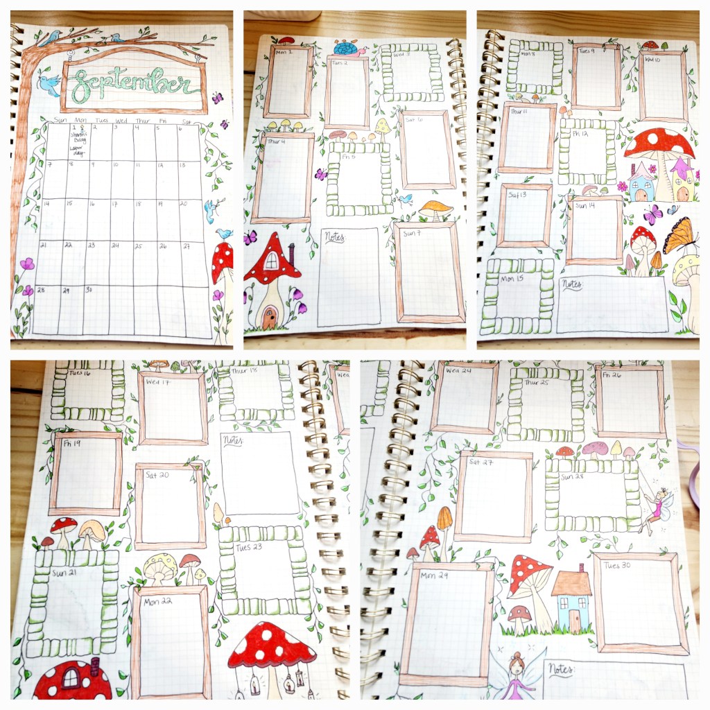 Step 4: Add your special touches. We love to draw so doodling comes naturally to us. We just used our imaginations to personalize each calendar with cute designs that fit in with each individual month. How much you do is completely up to you. You could even choose to decorate your journal as you go if you’d like to have something to doodle on throughout the year.