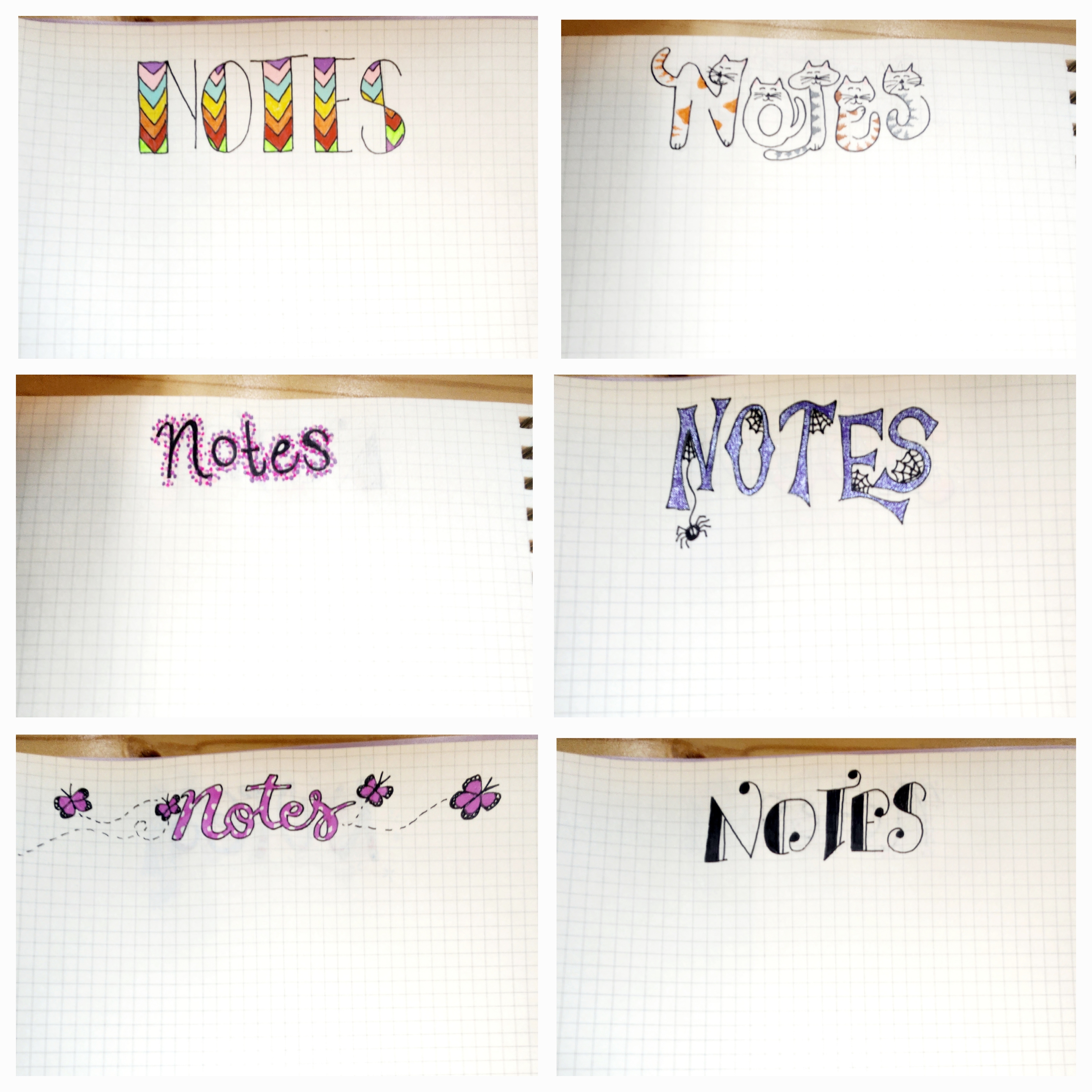 Step 7: After we finished our calendars and information pages we still had some empty pages left. You could just leave them blank of course but because we are extra we had to put something on them. We just added the header “Notes” to the tops of the blank pages in interesting fonts.
