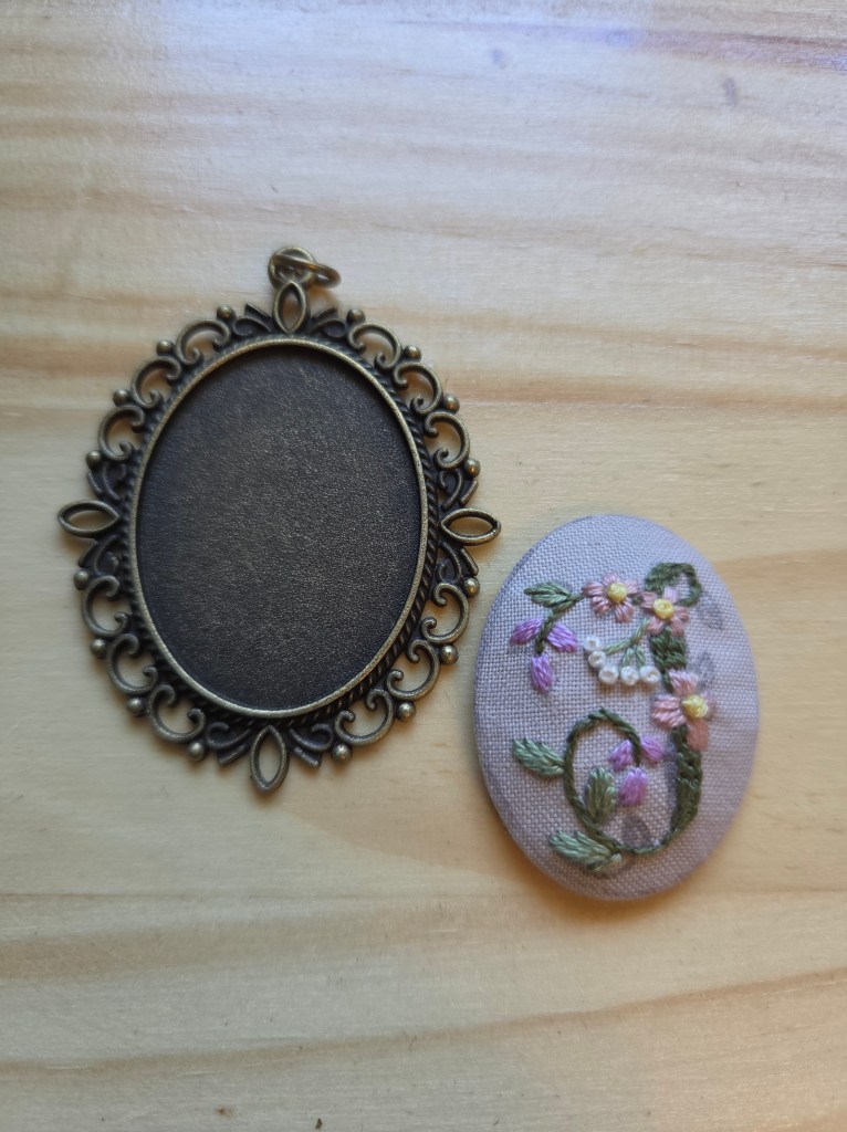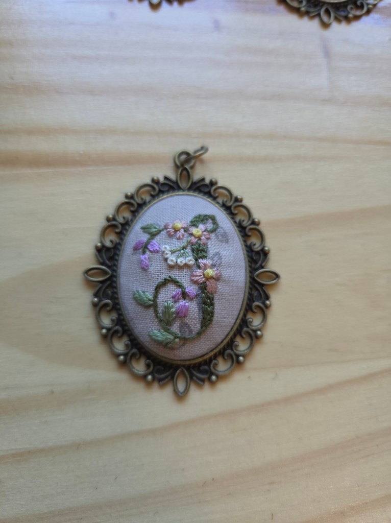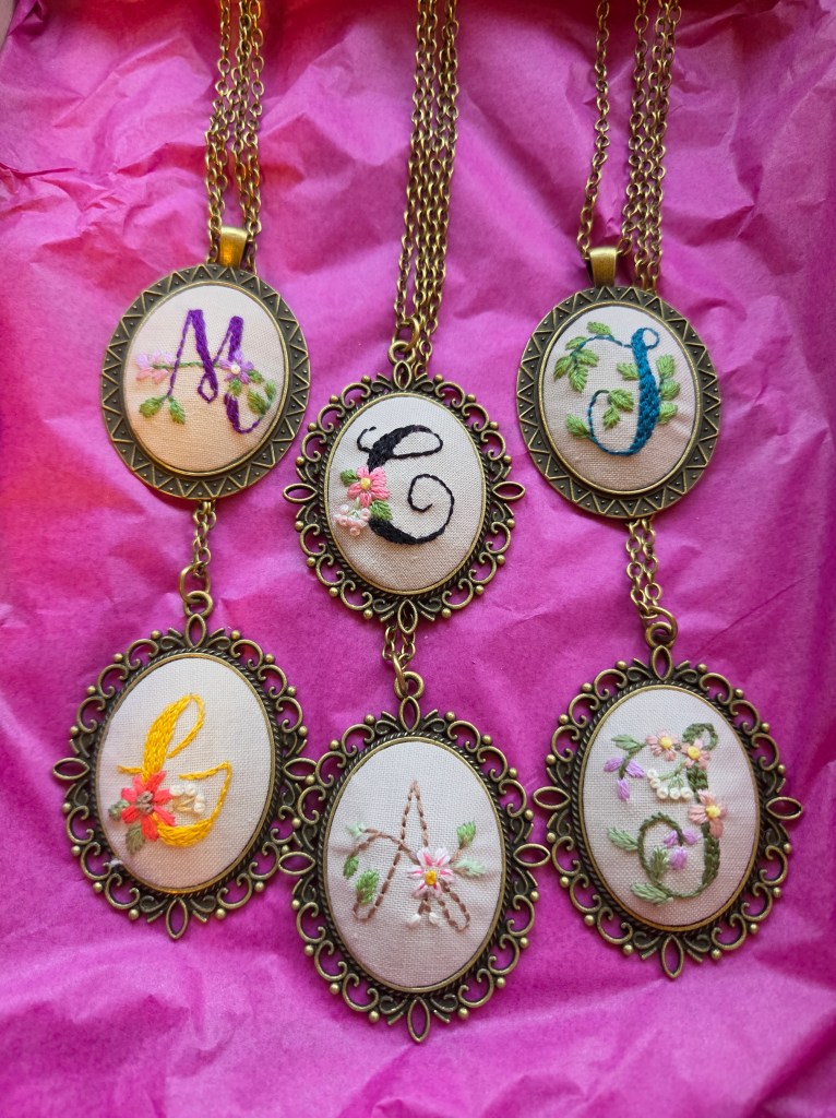 That’s it! Now you have a hand embroidered pendant necklace that anyone would love! We made these for mother’s day gifts, these are personalizable. You could make them work for anyone who loves jewelry. Happy crafting!