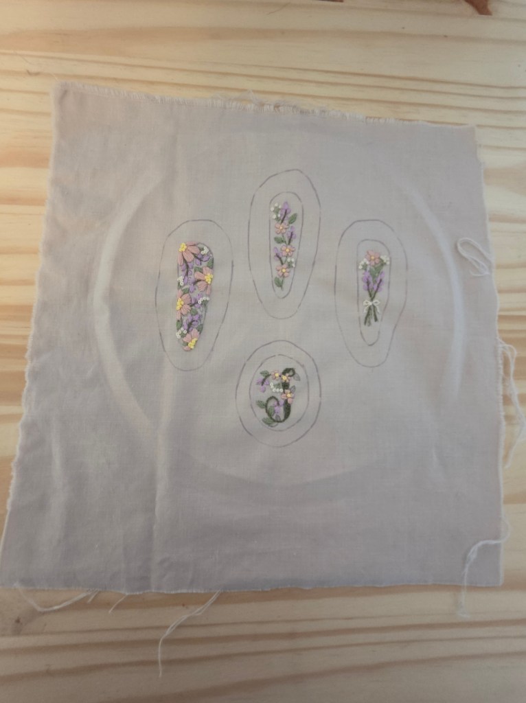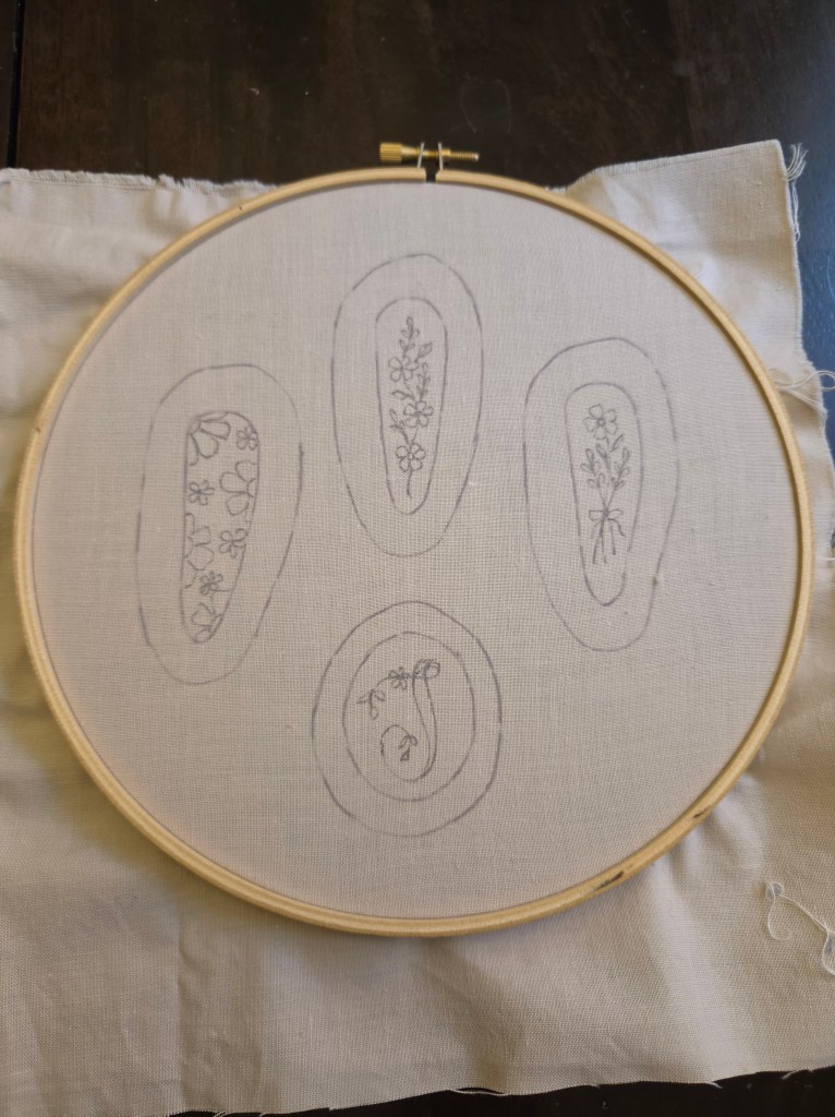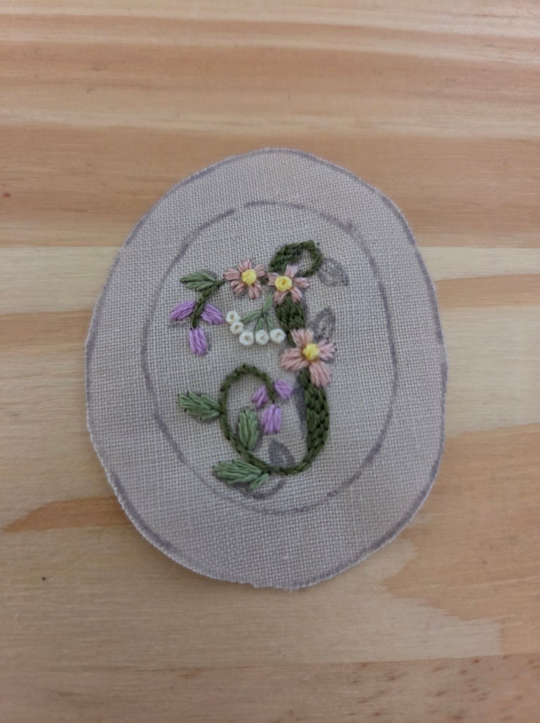 Step 7: Once your embroidery is finished take it out of your embroidery hoop and carefully cut out around the larger traced oval.