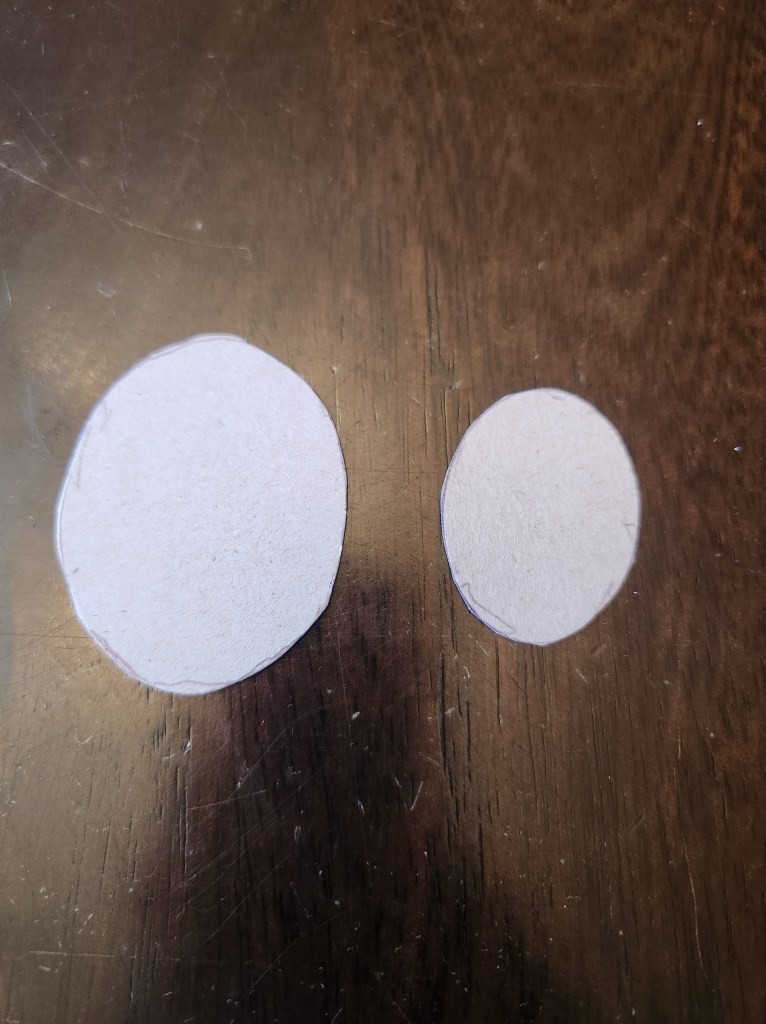 Step 2: Create your stencils. Our kit told us what sizes our stencils needed to be, so follow the directions in your specific kit. We needed 2 sizes of a small oval shape. One the size the fabric needed to be and one the size our design needed to be.